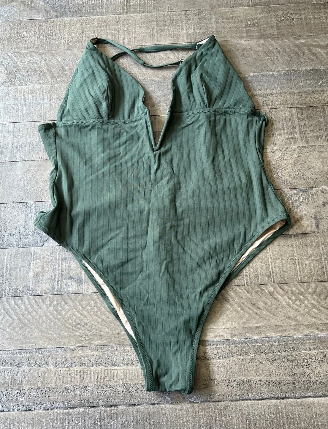 Shade & Shore Swim Women's Green One Piece Swimsuit Adjustable straps Ribbed Plunge Size XL 3... Show more
