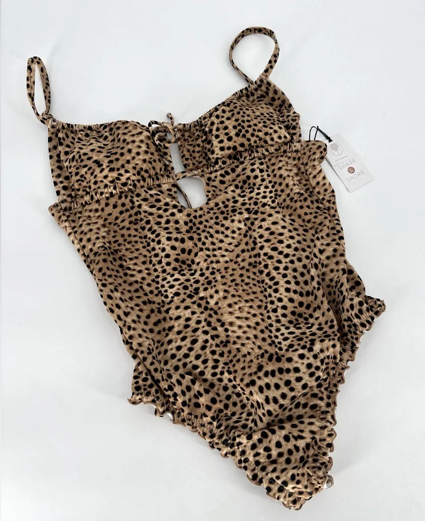 Shade‎ & Shore Womens Tunnel Keyhole Animal Print Swimsuit, Beige Size S (4-6) Tan - $17 New With Tags - From Sarah