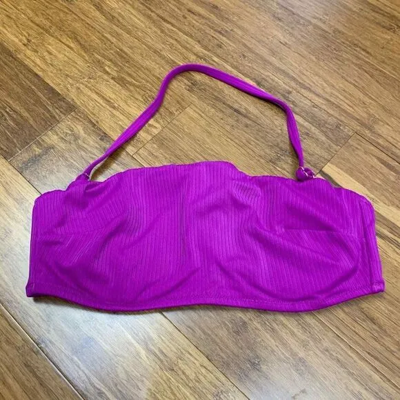 Bright purple color Ribbed material Back closure Removable strap Underwire Pockets for padding, NO p... Show more