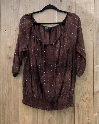 Shannon Ford New York Stretch Top T-Shirt Sequined Size Large Brown‎ Waterfall Brown - $13 - From Caitlin