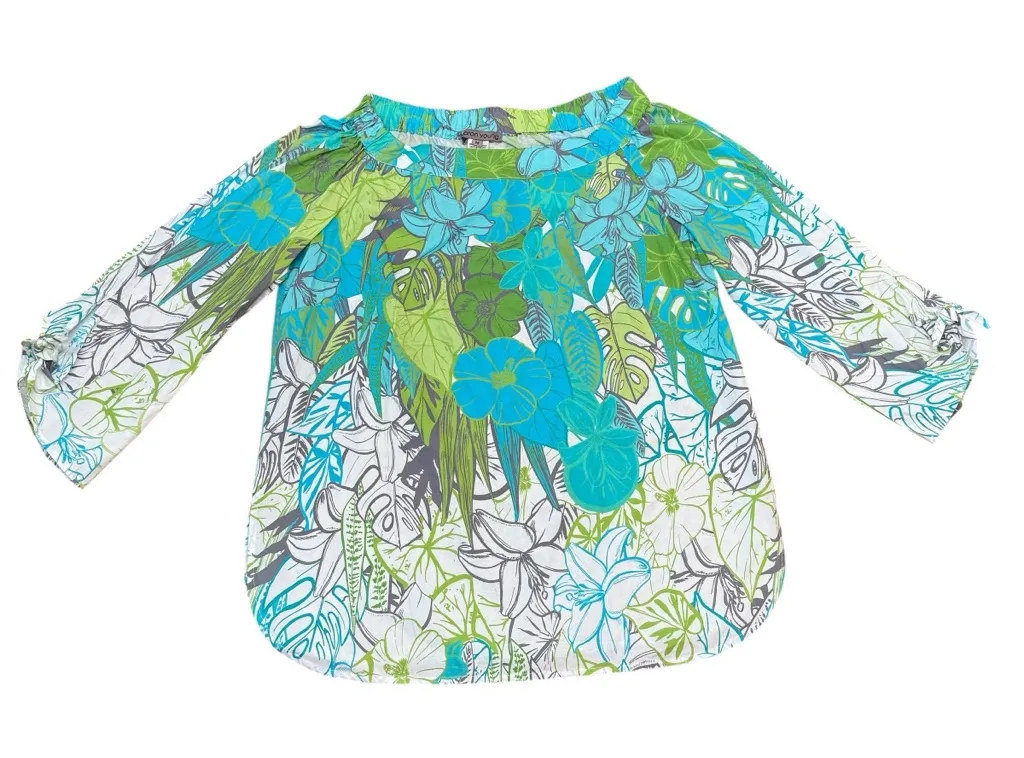 Sharon Young Shirt Women M Floral Linen Embroidered 3/4 Sleeve‎ Boho Retro Artsy Size M - $28 - From Heidi