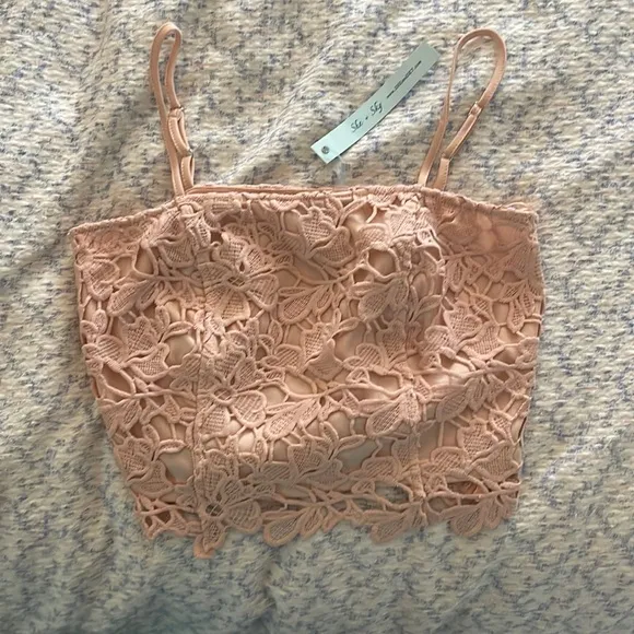 She + Sky lace crop top in light pink Had side zipper for easy in and out, adjustable straps, never... Show more