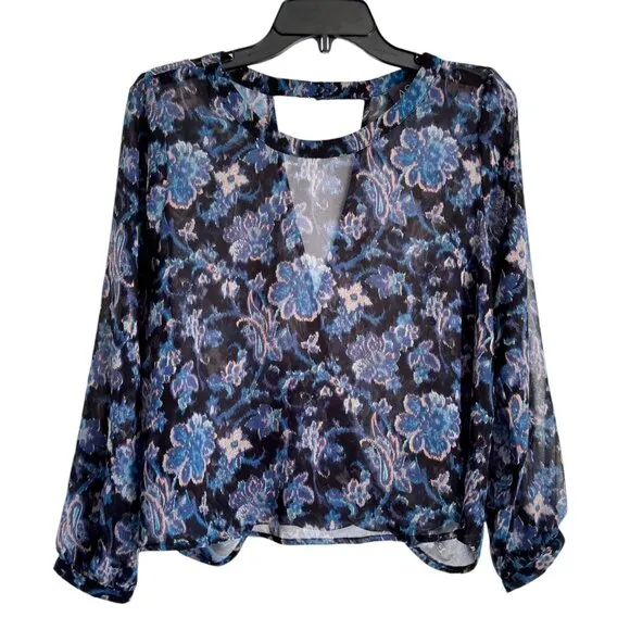 Sheer fabric with a floral pattern and a unique cutout detail. Ideal for casual or semi-formal wear.... Show more