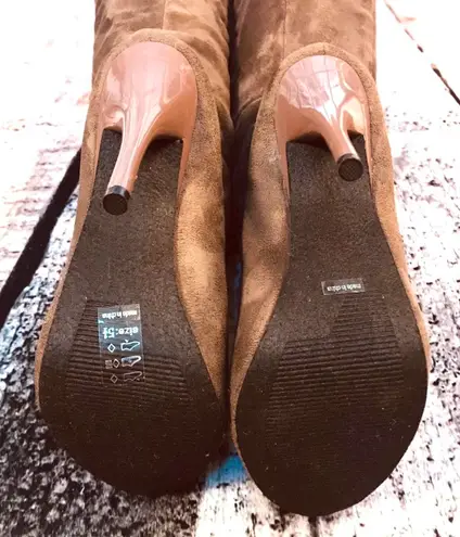 You’ll love these boots from the moon and back .....boots R over the knee thigh highs simple yet stylish. The soft suede exterior & round toe, stiletto heels giving the boots a sheik look that will adds sense of fashion that will make your skinny jeans or a sweater dress pop. If you like makings a statement when you walk into room these would be a great grab. NWOT