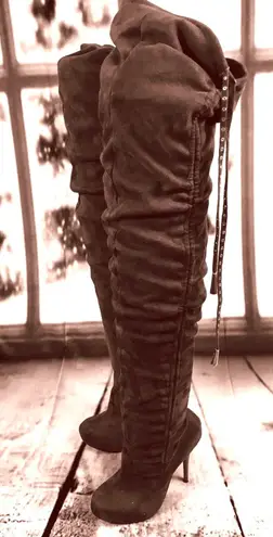 You’ll love these boots from the moon and back .....boots R over the knee thigh highs simple yet stylish. The soft suede exterior & round toe, stiletto heels giving the boots a sheik look that will adds sense of fashion that will make your skinny jeans or a sweater dress pop. If you like makings a statement when you walk into room these would be a great grab. NWOT