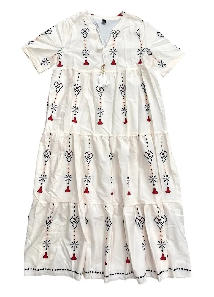 A-Line Tribal Print with Tassel Accent Maxi Dress in Peach, Size L Color is a very light peach colo... Show more