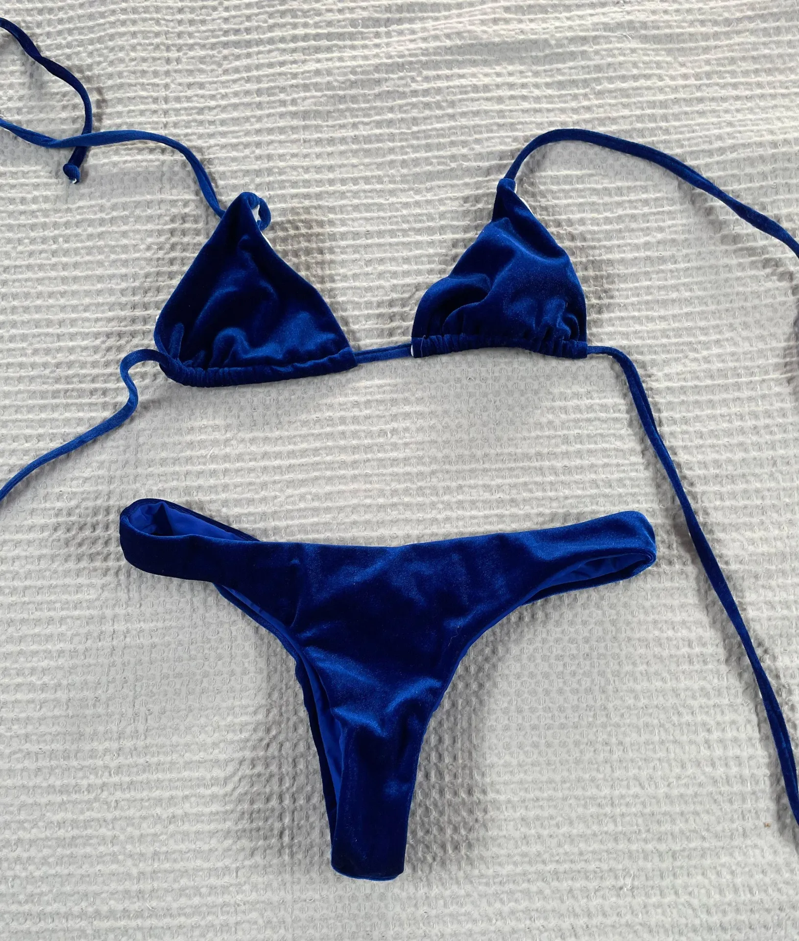 Velvet bikini triangle top fits small Fabric feels like real velvet Never worn it was too small