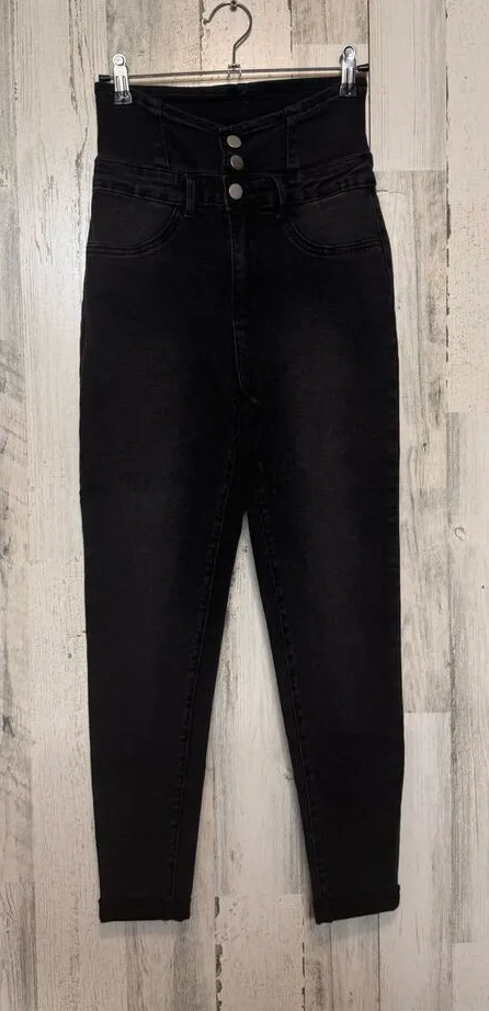 Size: Small (26) Measurements (approx using AI): • Waist: ~12.5” flat (25” around, with stretch) • Rise: ~12.5” (extra high waist) • Inseam: ~27” • Total length: ~38.5” Smoke-free home No rips No stains Ships fast — same or next day Open to offers or bundles! Measurements are estimated using AI based on mannequin fit. Please allow slight variation. Fabric: 83% Cotton, 15% Polyester, 2% Elastane (stretchy)