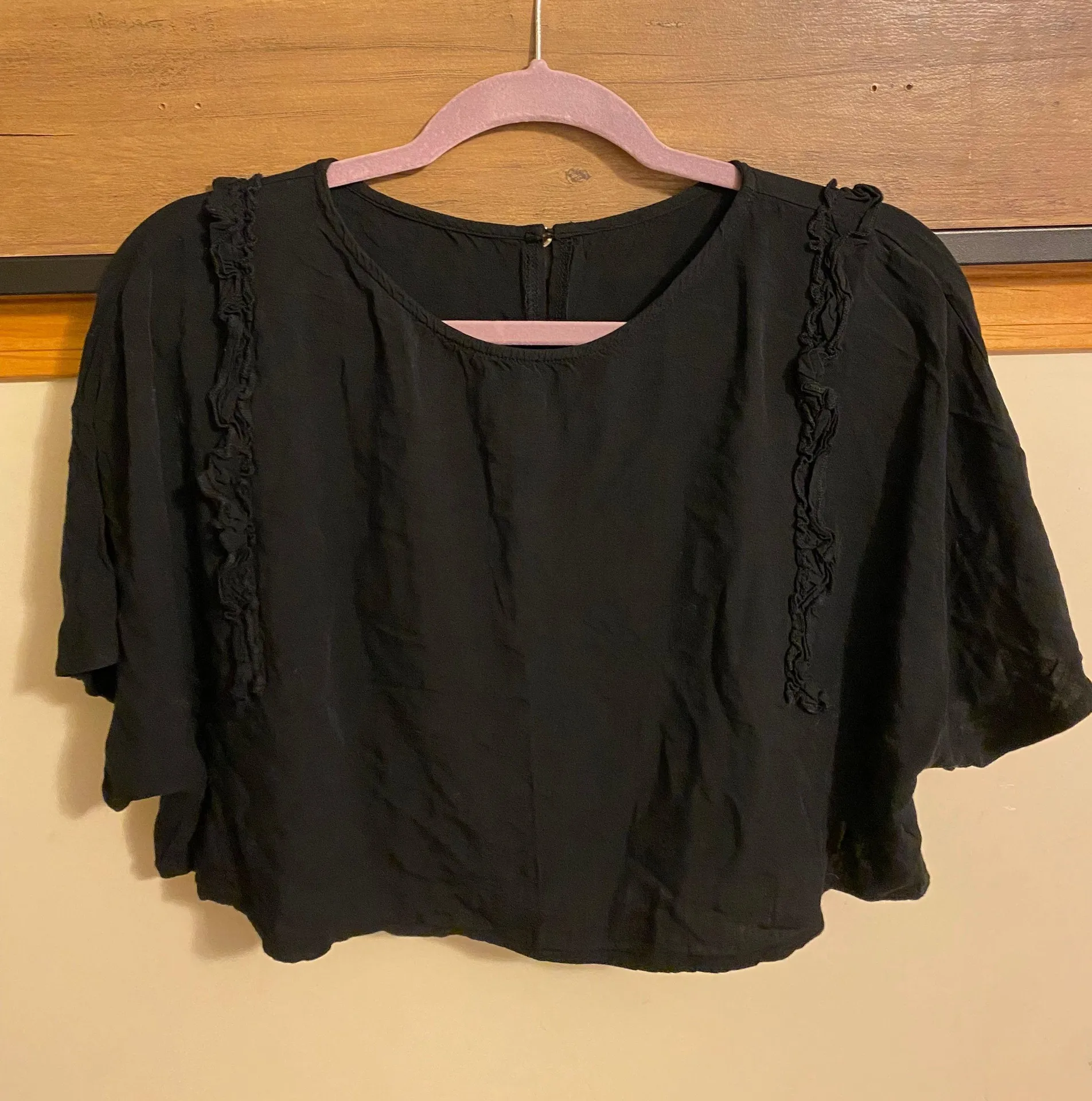 SheIn black flowy short sleeve ruffle top size xl runs slightly small and cropped great condition st... Show more