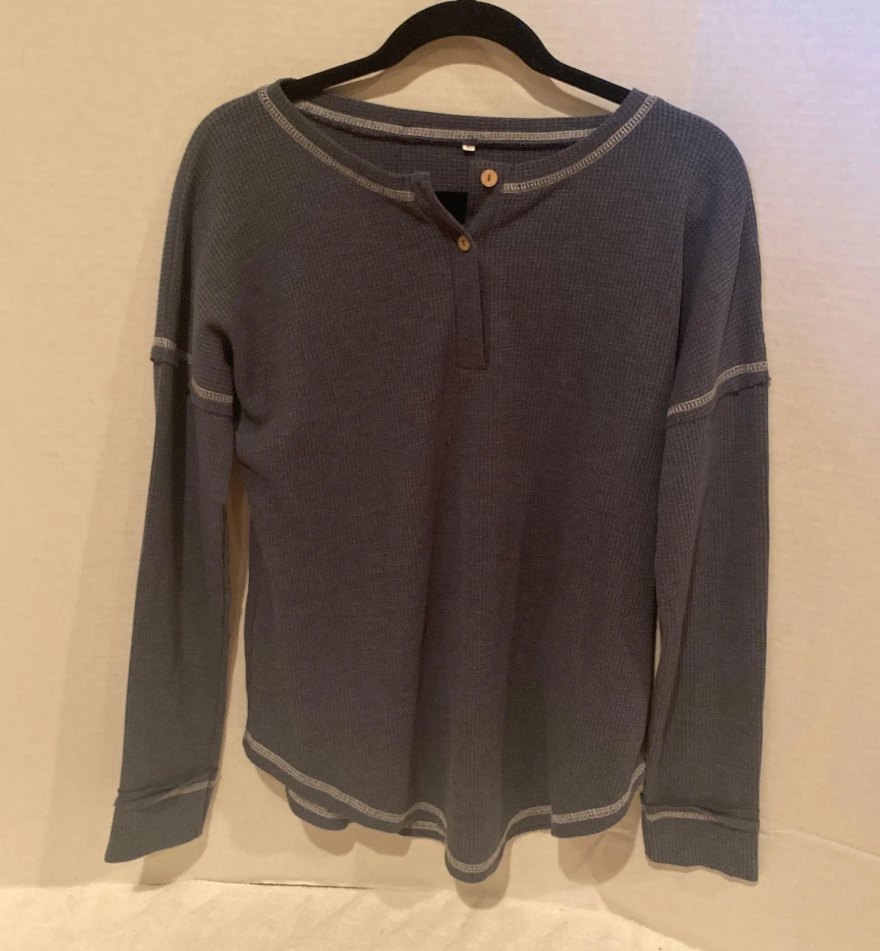 SHEIN Blue long sleeve button top. SIZE: LARGE. Never been worn! No wear or stains. Super cute for f... Show more