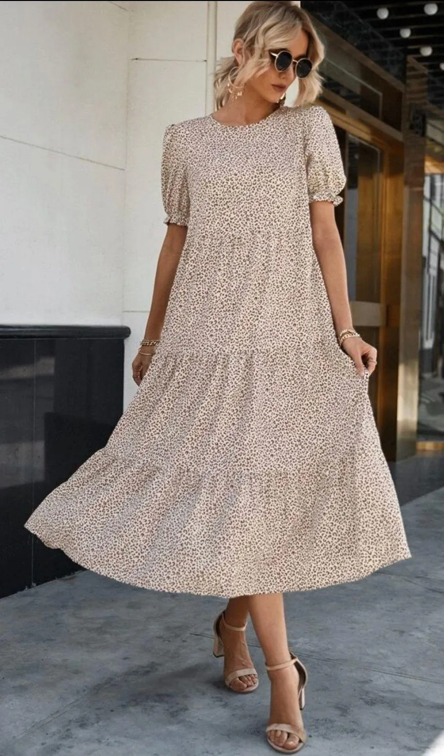 size Medium dress from shein. it’s super cute and float. good material but i was to tall for it.