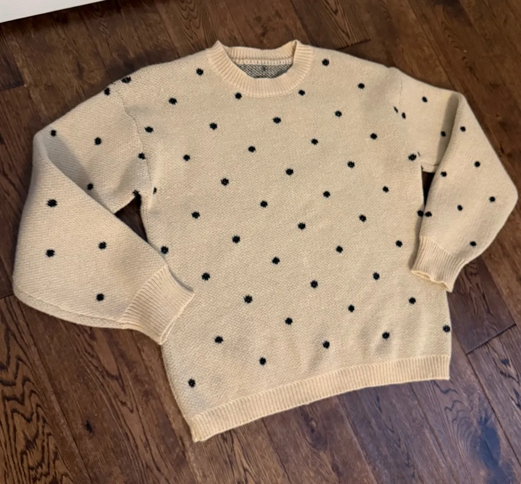 SHEIN sweater cream and black polka dots. I never actually wore this so it’s just been hanging in my... Show more