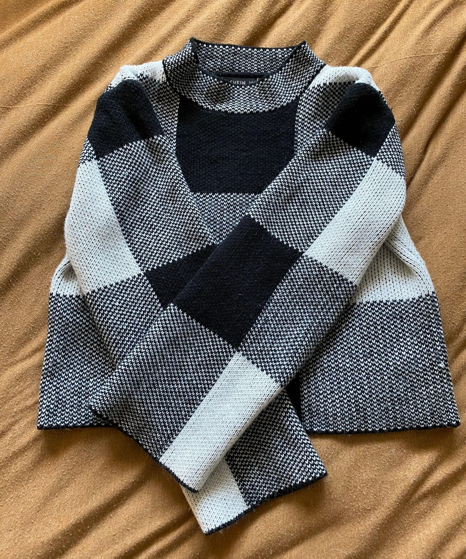 Black and white checkered cropped sweater. Very cute and good material. Only worn once. No stains, r... Show more