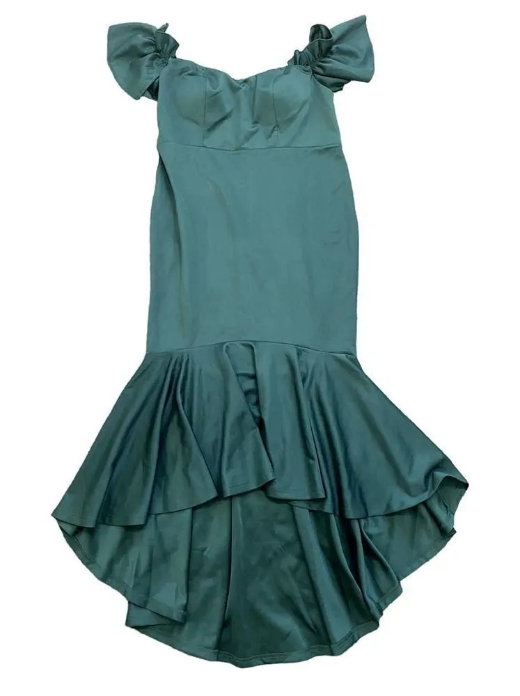 SHEIN Curve High Low Off The Shoulder Ruffle Dress in Green, Size 2XL New without tags. In excellen... Show more