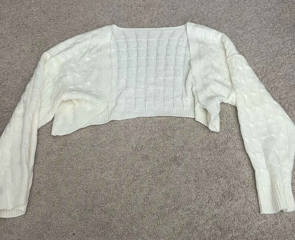 Cute and cozy SHEIN Curve cropped knit cardigan/shrug in a classic white. Perfect lightweight layer... Show more