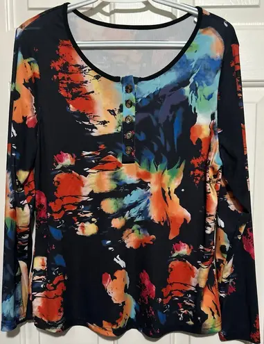 Shein Curve Women's Black Multicolor Long Sleeve Quarter Button Top Size 1XL 24" Long x 18" Pit to P... Show more