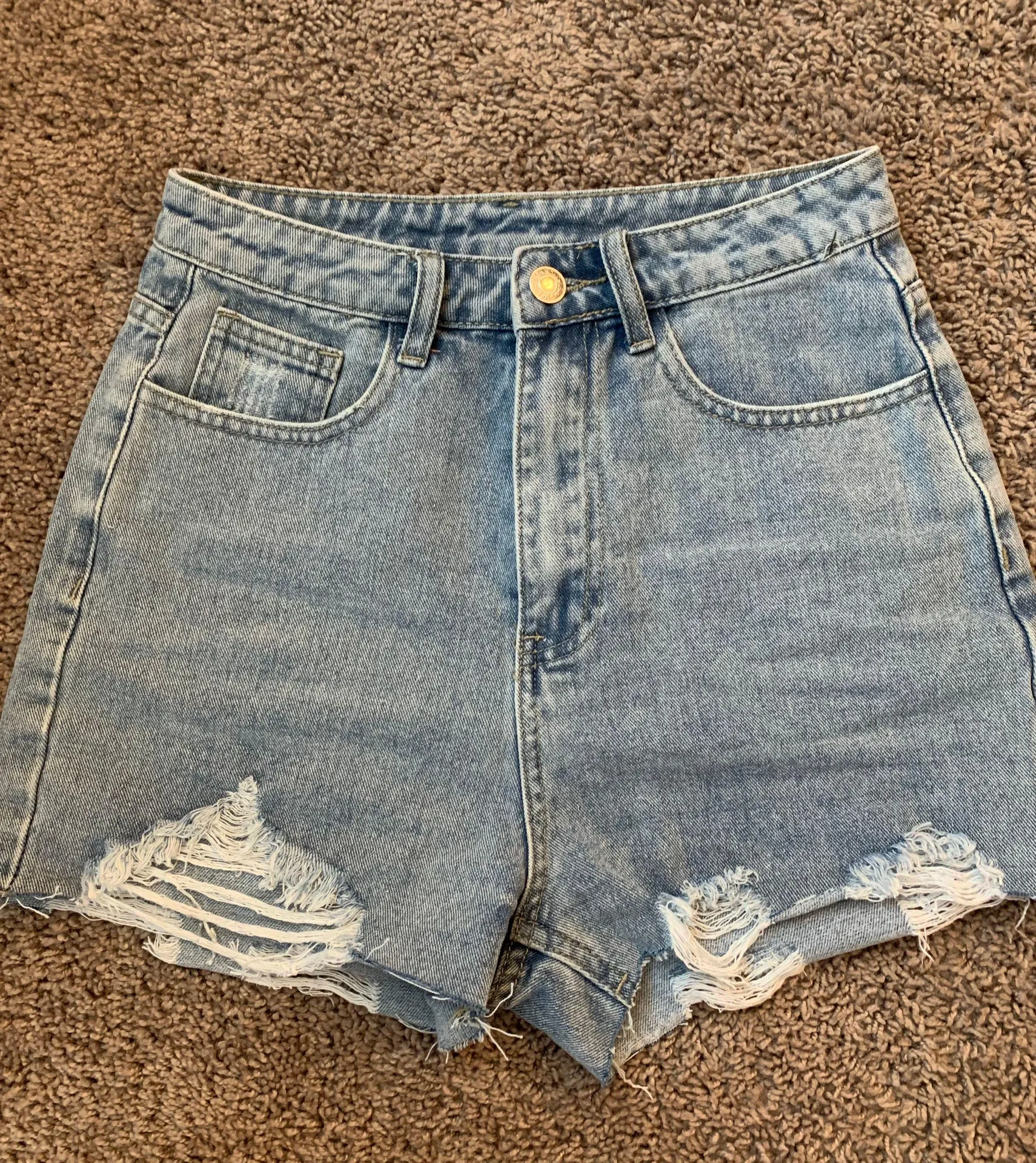 light wash denim shorts from shein! Fits like Bermuda/mom shorts! NEVER WORN, just too big on me.