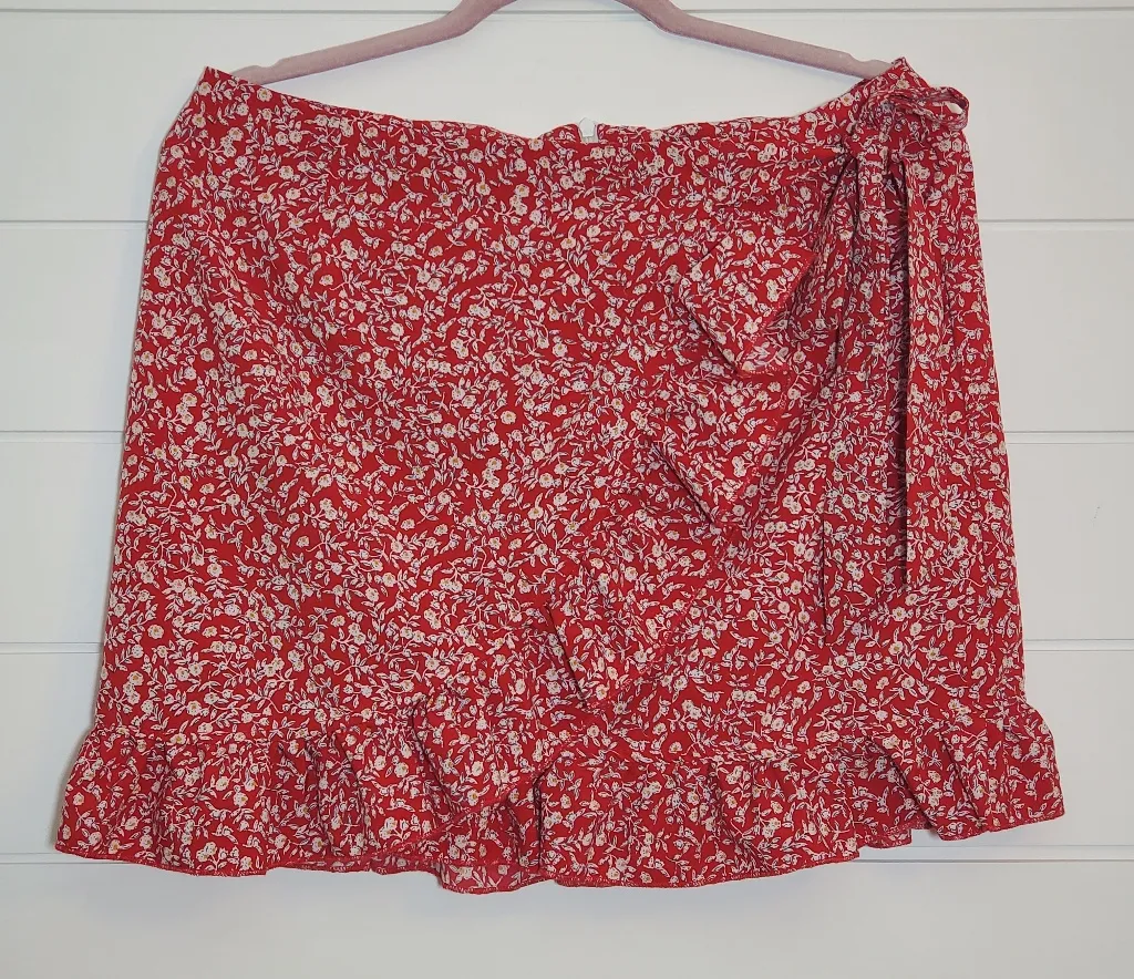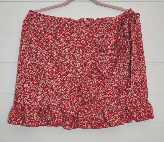Shein Ditsy Floral Ruffle Trim Wrap Knot Skirt Red and White. Size: Large. Gently worn. Please reac... Show more