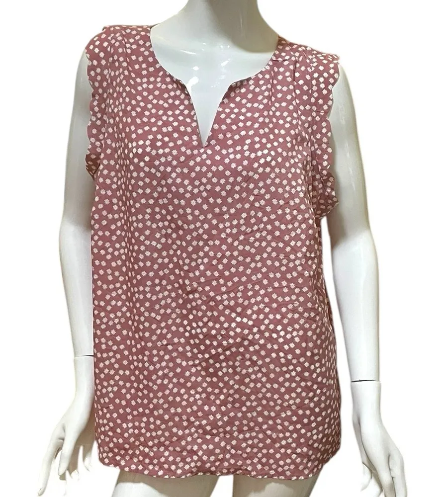 This SHEIN blouse features a sleeveless design with a relaxed fit and a charming pink and white dits... Show more