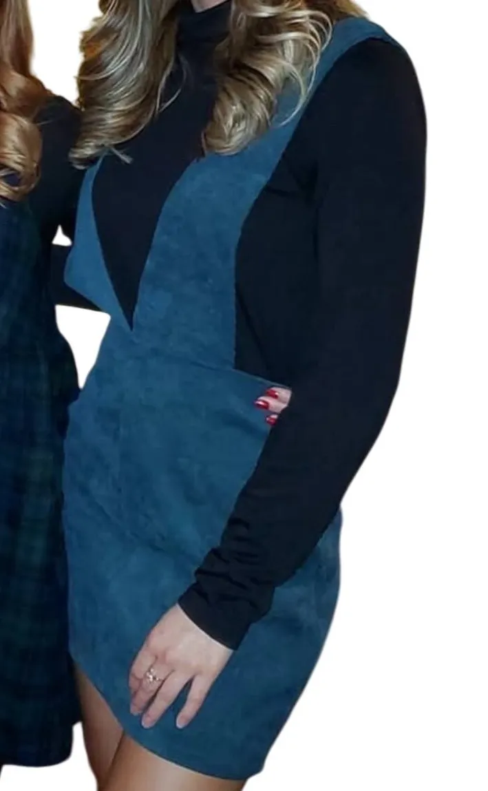 Evoke a sense of confident sophistication with this charming corduroy suspender dress. The deep V ne... Show more