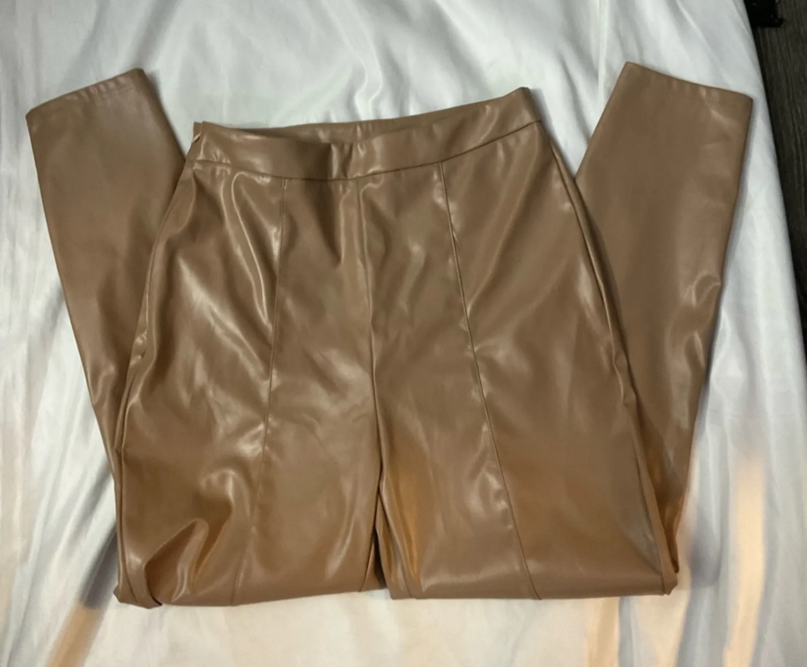 Style: Pull on pleather pants Color: Tan/Brown Size: M Waist: 13” Rise: 12” Inseam: 26” Condition: G... Show more