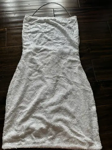 Shein Halter dress Draped or square neckline Open back Size: XS Color: white sequin