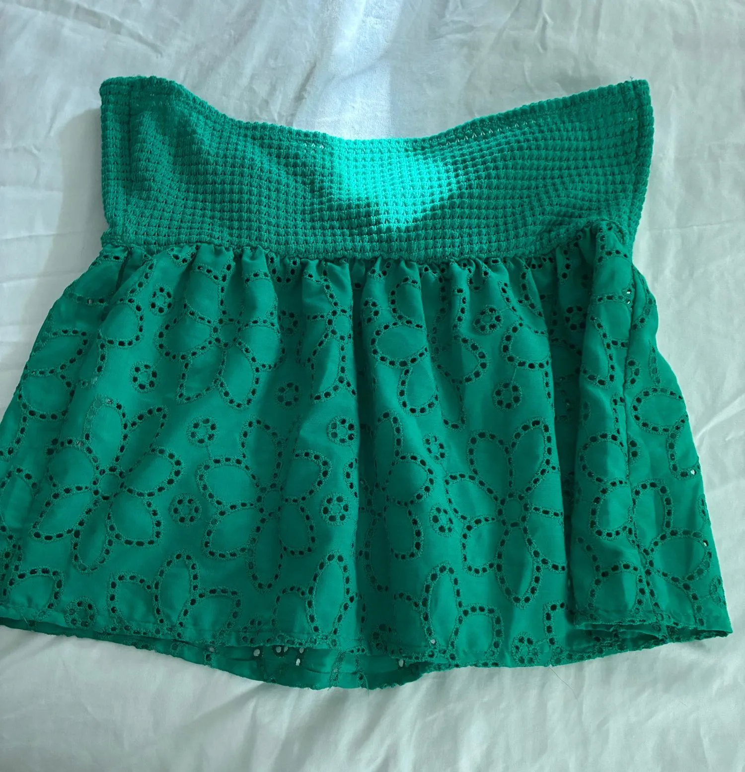 Kelly green halter top. Criss-cross top with small opening under the knot.