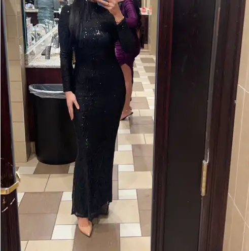 Mock neck split thigh maxi sequin dress Long sleeve. Worn once. Great condition. Size small.
