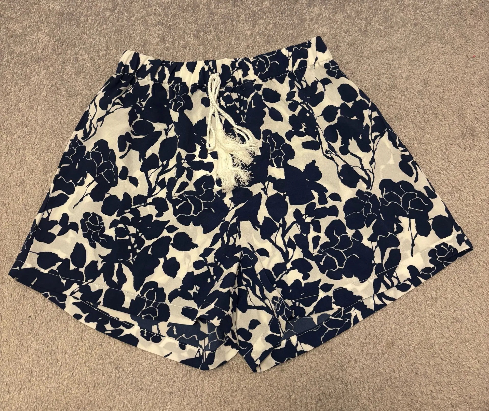SHEIN Navy and White Floral High Waist Shorts Brand: SHEIN Size: Medium Color: Blue and White Condit... Show more