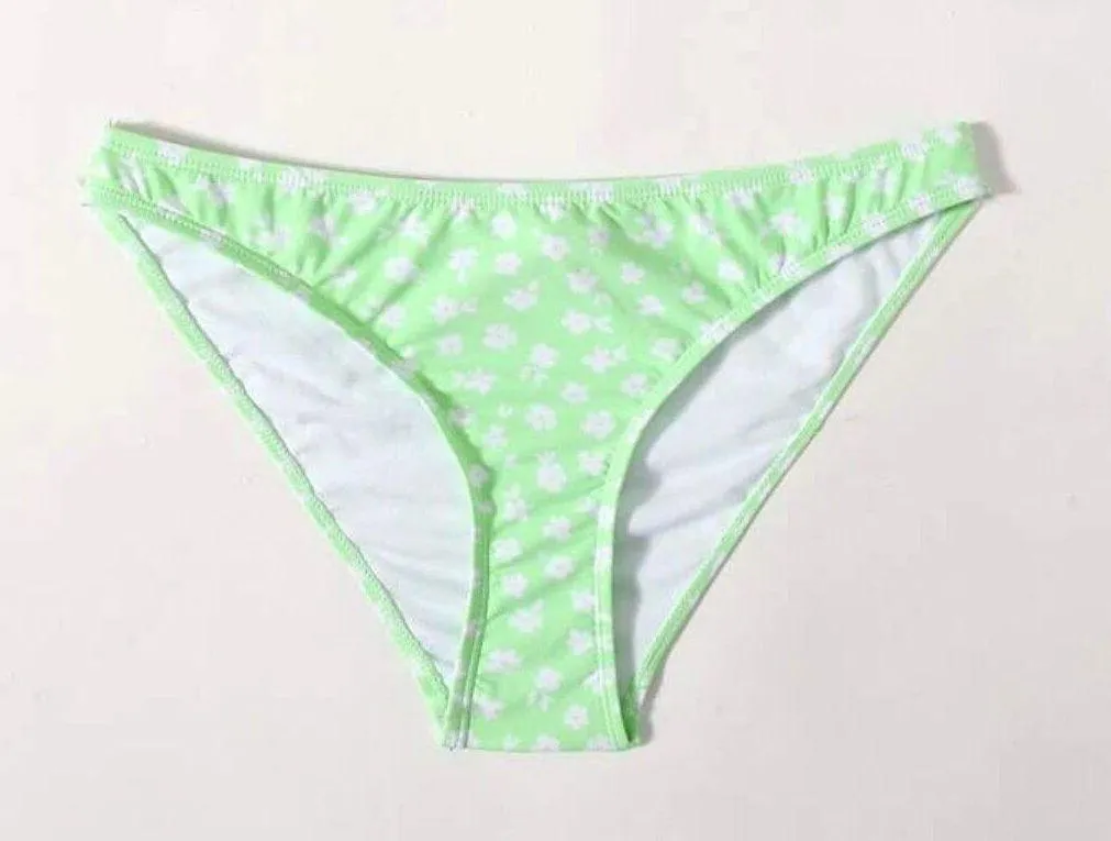 SHEIN SWIMWEAR DARLING FLORAL BIKINI BOTTOMS SIZE MEDIUM LIGHT LIME GREEN WITH WHITE FLORAL PRINT VE... Show more