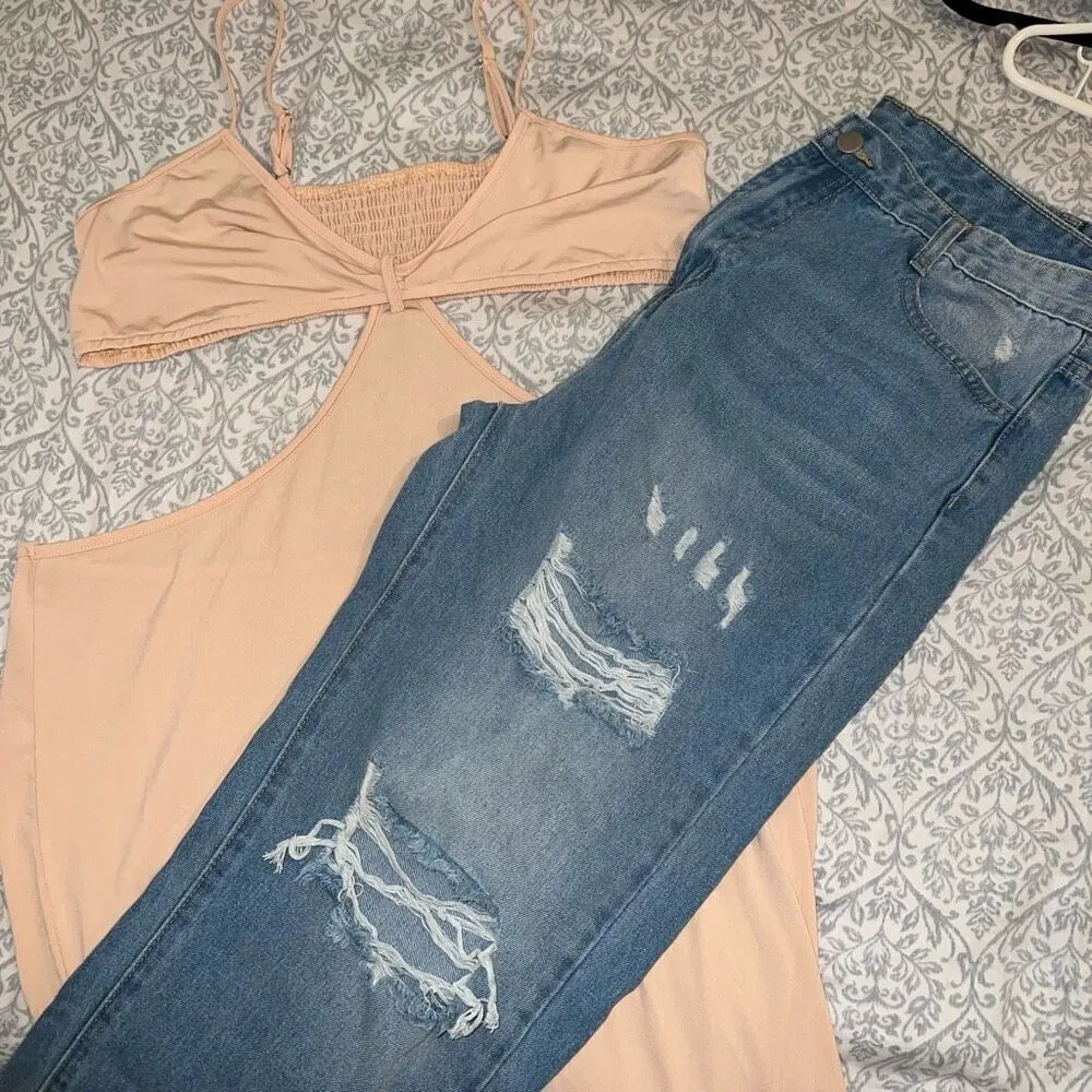 Nude cutout dress and baggy boyfriend jeans bundle set size XL