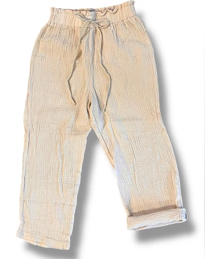 SHEIN Oatmeal MID-WEIGHT COTTON Cropped TAPERED LEG Pockets LAGENLOOK Pants Sz S/Med? See photos for... Show more