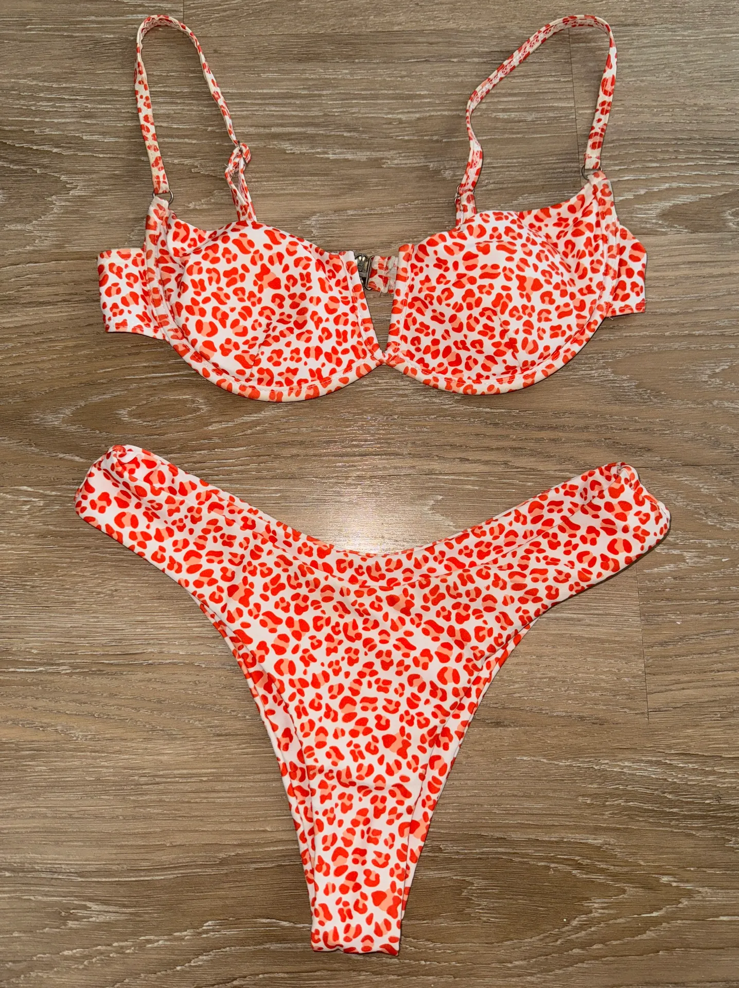 Orange and white bikini set from Shein • size Small (S) • underwire & adjustable straps on the top •... Show more