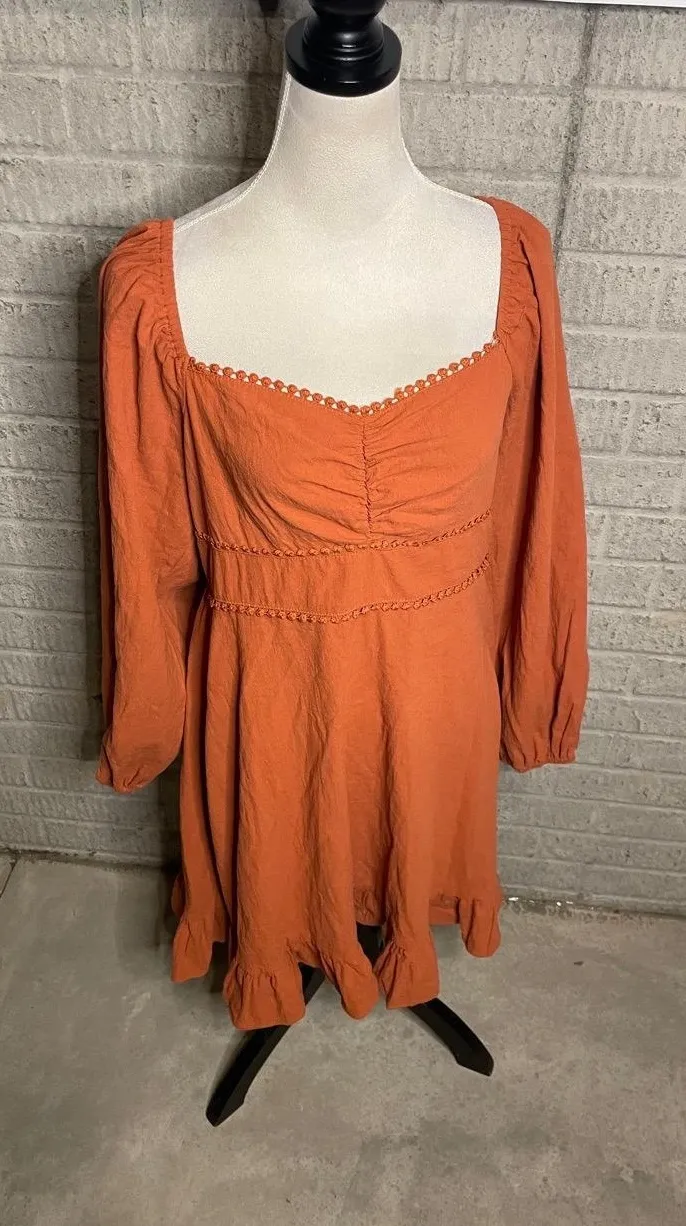 SHEIN Womens Orange Long Sleeve Sweetheart Neckline Ruffled Hem Mini Dress Size XL This stunning SH... Show more