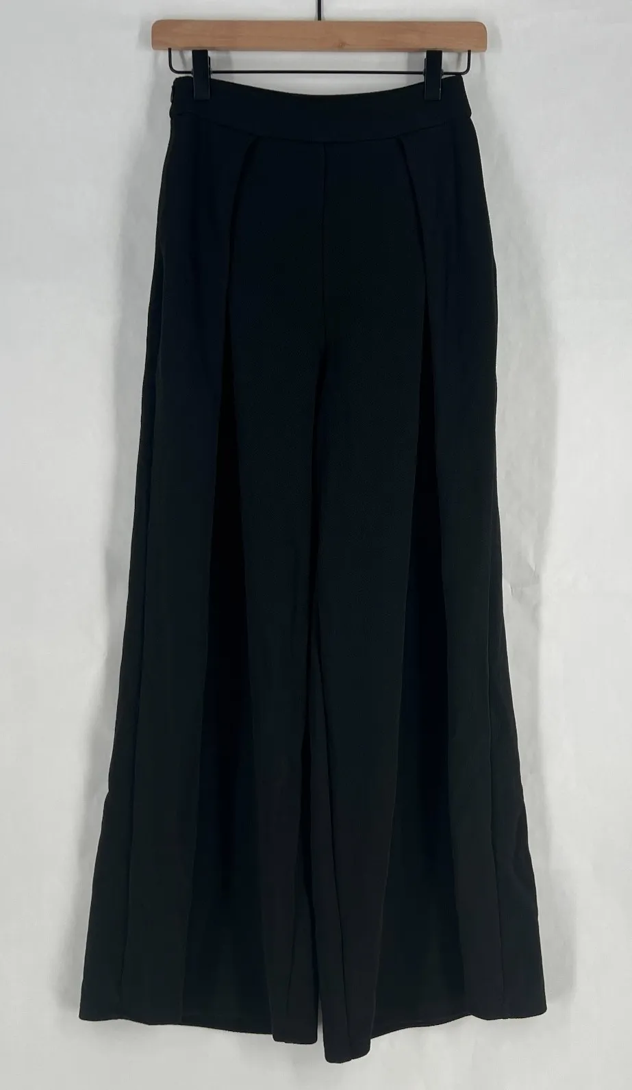 Description Shein Palazzo Crepe Pants Womens XS Black Pleated Side Zip High Rise Wide Leg Product... Show more