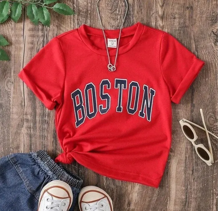 Shein Red Boston Print Short Sleeve Crewneck T-Shirt Women's Size Medium All orders ship next busin... Show more