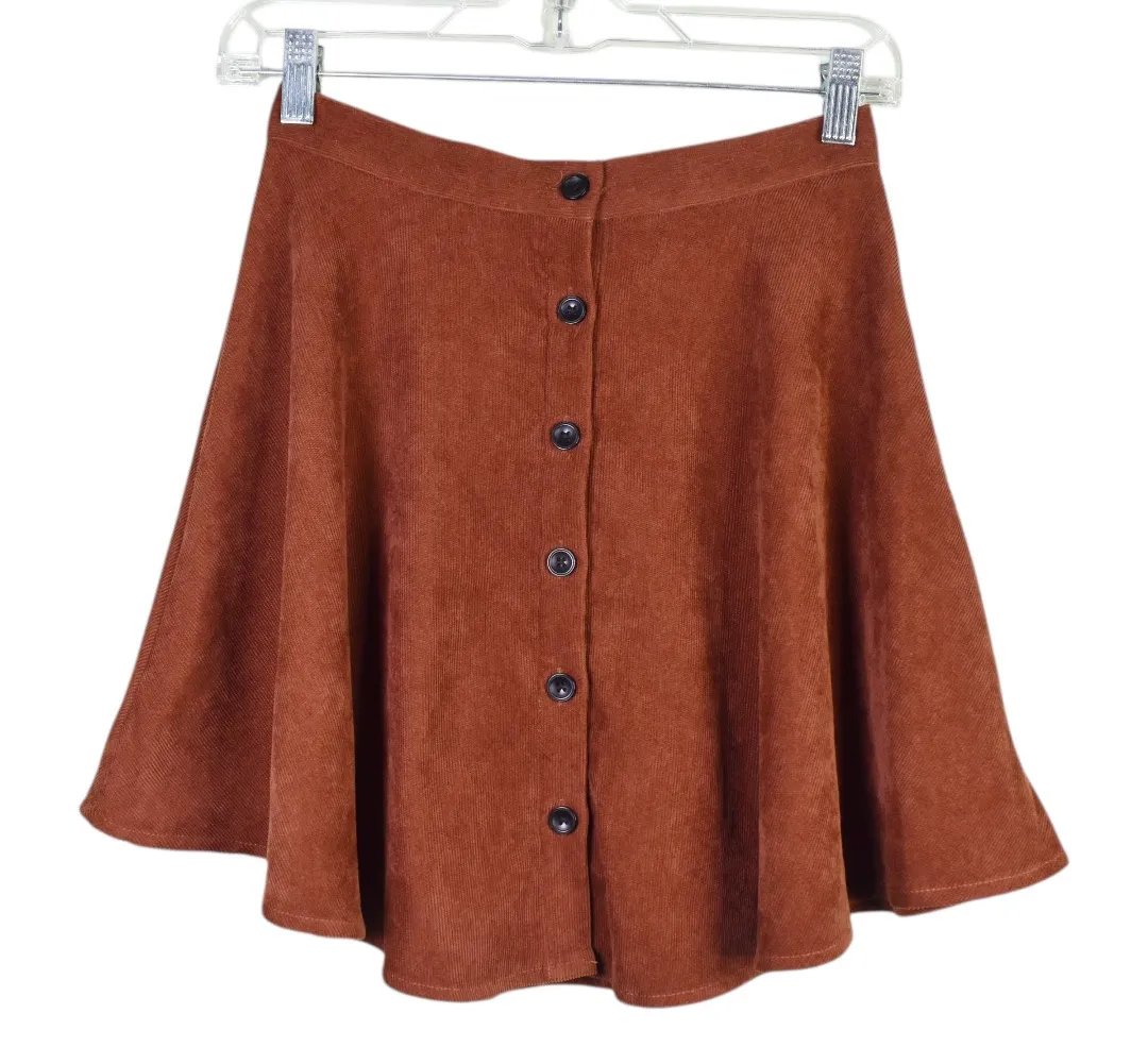 Cozy and stylish A-line mini skirt from SHEIN in a rich rust/cinnamon brown corduroy, perfect for fa... Show more