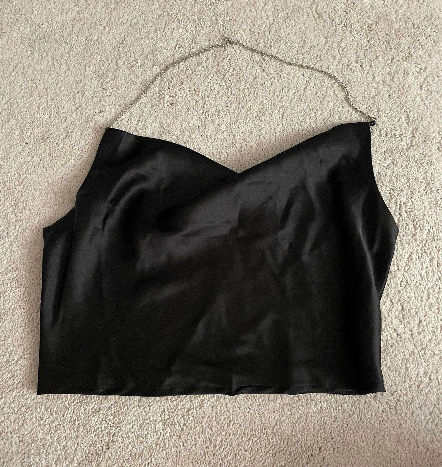 Super cute silk cropped top with silver chain strap around neck! Only worn twice!