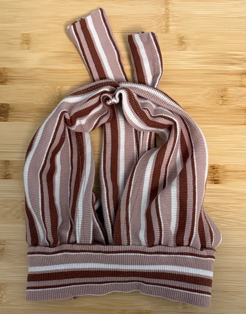 Stylish striped halter top in brown and cream. Perfect for casual outings. Shein Size Extra Small X... Show more