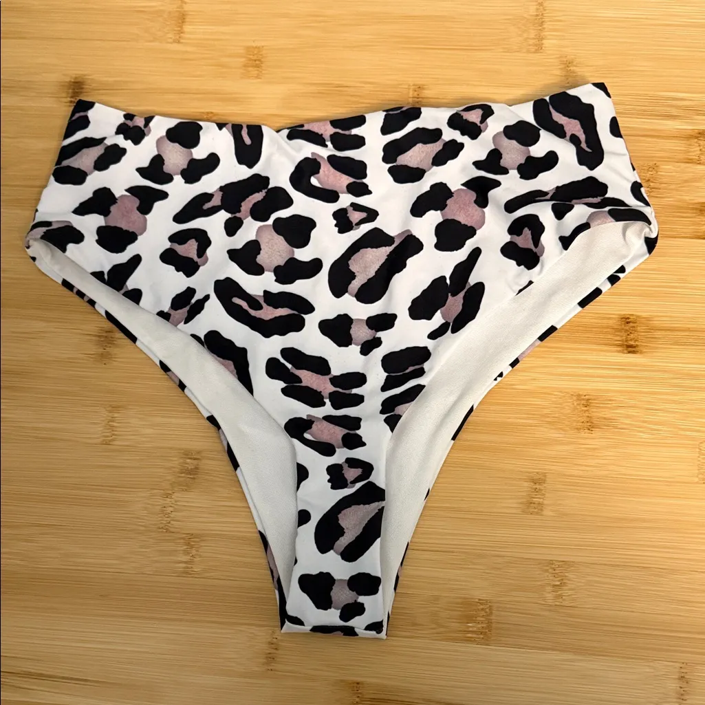 Stylish leopard print bikini bottoms. Features black and pink spots on a white background. Shein Si... Show more