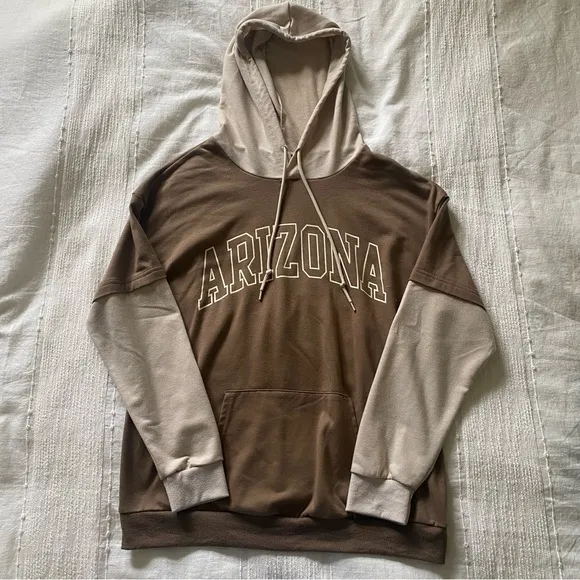 Shein t-shirt graphic colorblock hoodie sweatshirt tan brown Size S Message me with questions! #she... Show more
