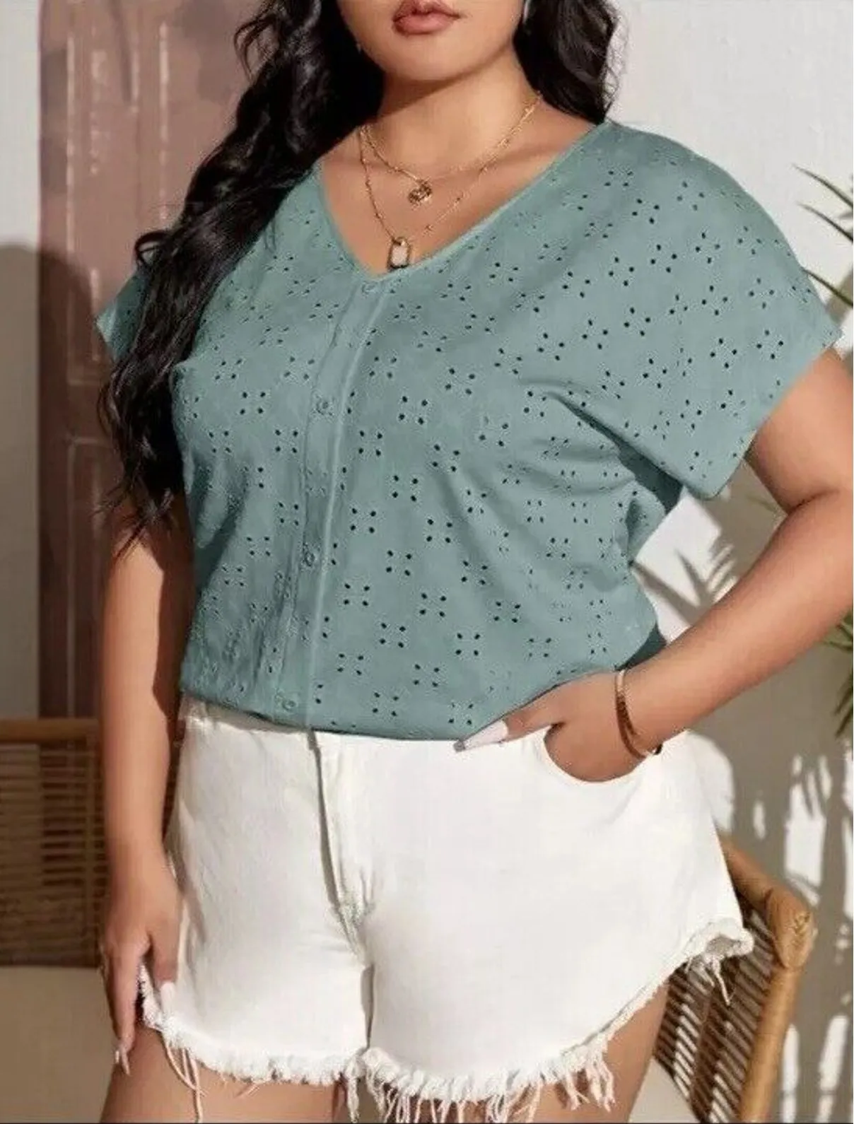 The Women Junior Plus Sage Green Faux Button Front Super Cute Blouse Top Shirt #117 is a stylish and... Show more