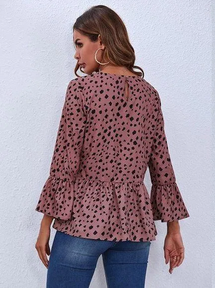 Women Size Large Ruffles Flare Long Sleeve Shirts Vintage Dots Printed Features:, Ruffles flared l... Show more