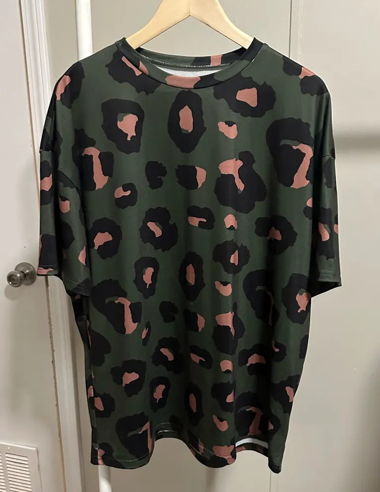 Dark Green, camo print cheetah print design Short sleeve, crew neck 25” pit to pit 29” length C... Show more