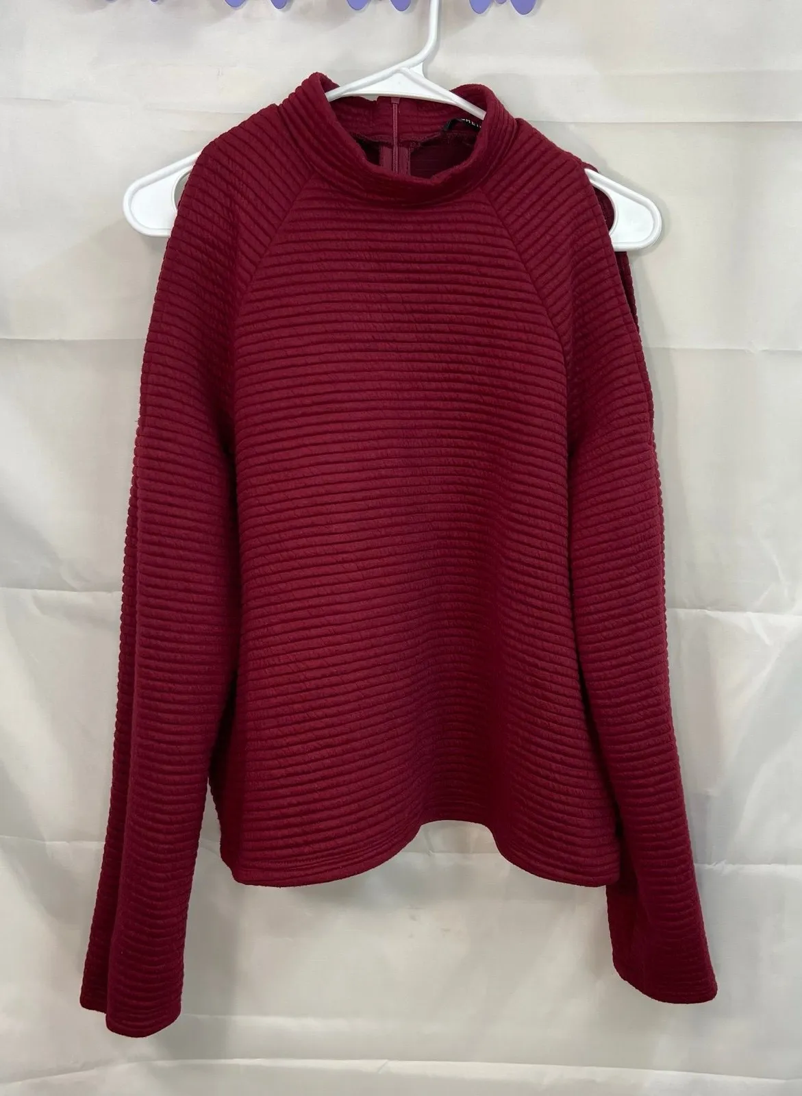 SHEIN women's dark red thick ribbed cutout shoulder mock neck long sleeve shirt Size large In good u... Show more