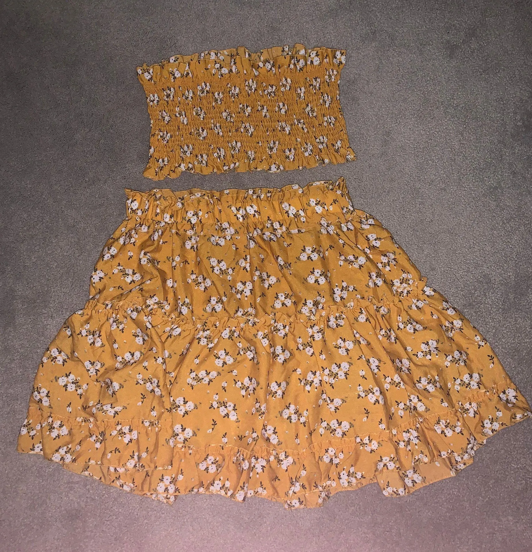 This beautiful yellow flower set! It’s a size medium, never worn! Fits like a glove and it’s gorgeou... Show more