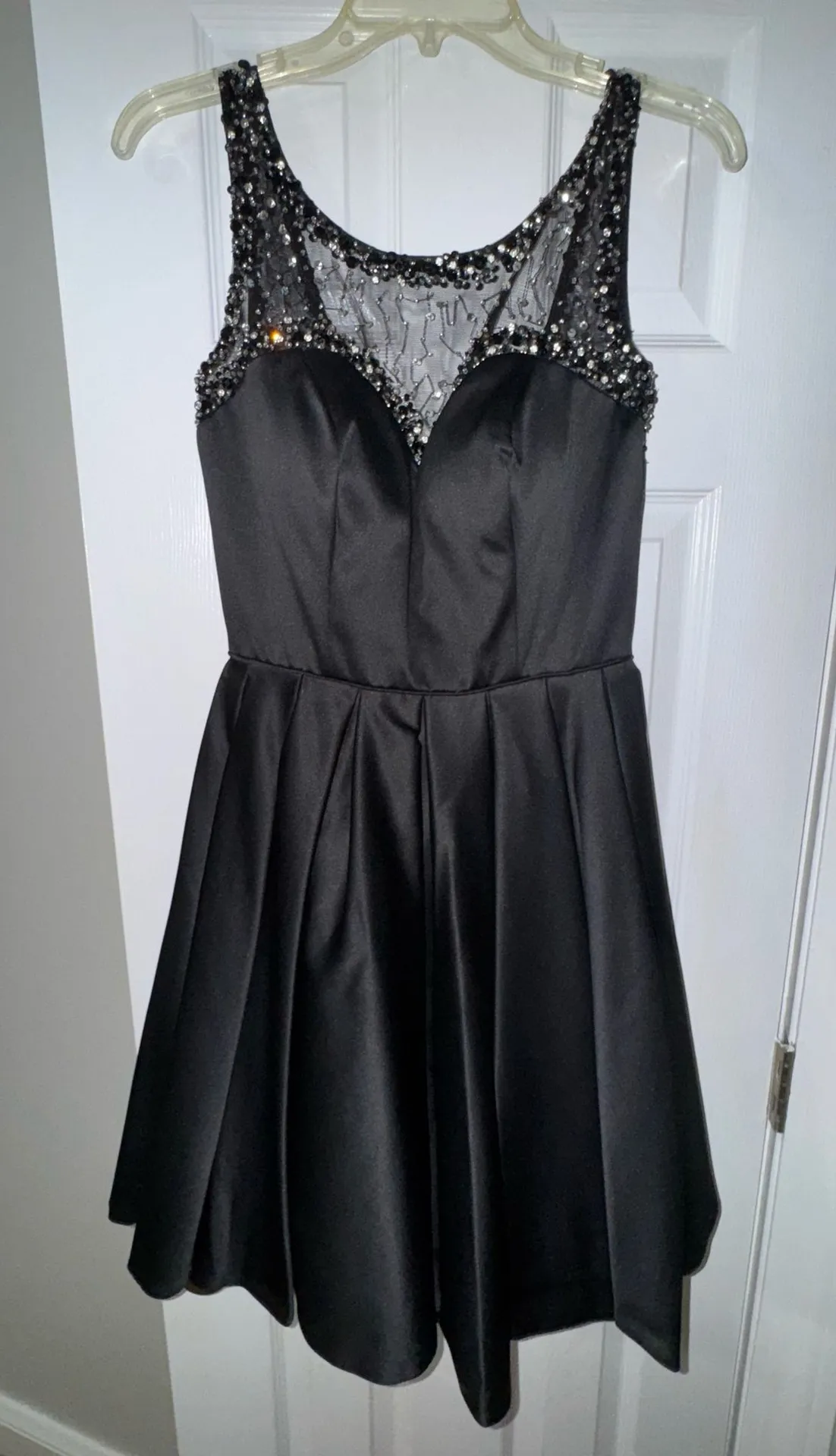 Sherri Hill black satin fit and flare cocktail dress with beaded mesh Size 6 - $115 New With Tags - From Caroline