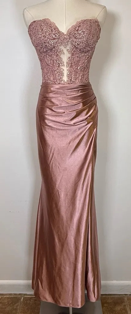 Beautiful Sherri Hill rose gold gown women’s size 2. Lace corset top with sewn in bra cups, shimmeri... Show more