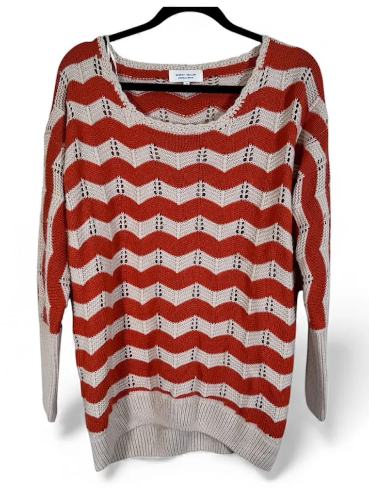 Sherry Taylor Orange Tan Open Knit Striped Sweater Womens L Chunky Fall Casual Size L - $30 - From Lisa