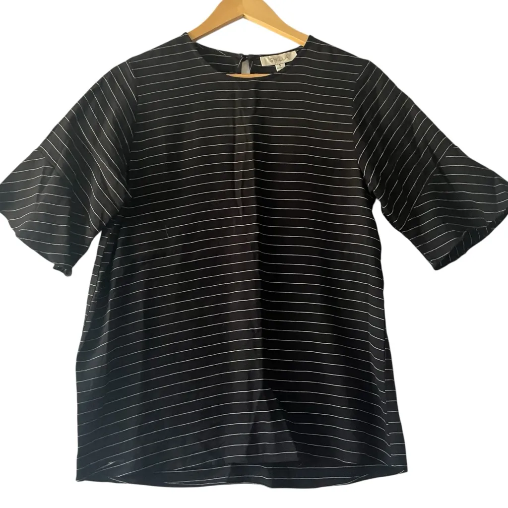 Shilla Chic Black Striped Women's Sz S Blouse‎ Business Casual Office Neutral - $19 - From Thrifted